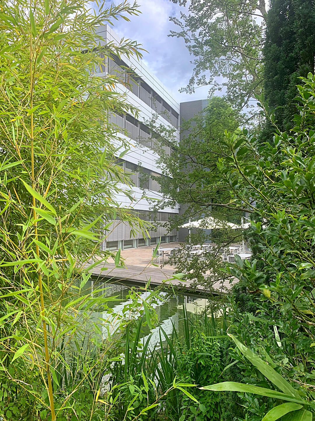 ca. 38.000 m², parkähnliche Außenanlagen mit Teich und Sitzgelegenheiten