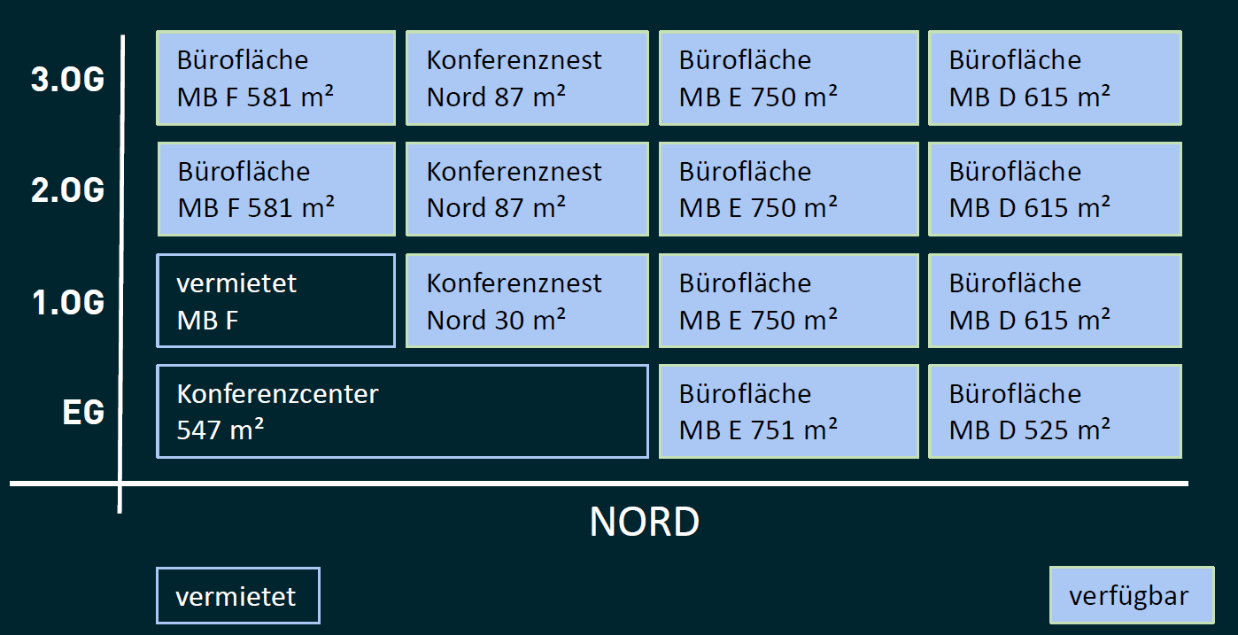 7.800 m² kurzfristig verfügbare Büroflächen, teilbar ab 580 m² Mittelfristig erweiterbar auf bis zu 16.600 m²