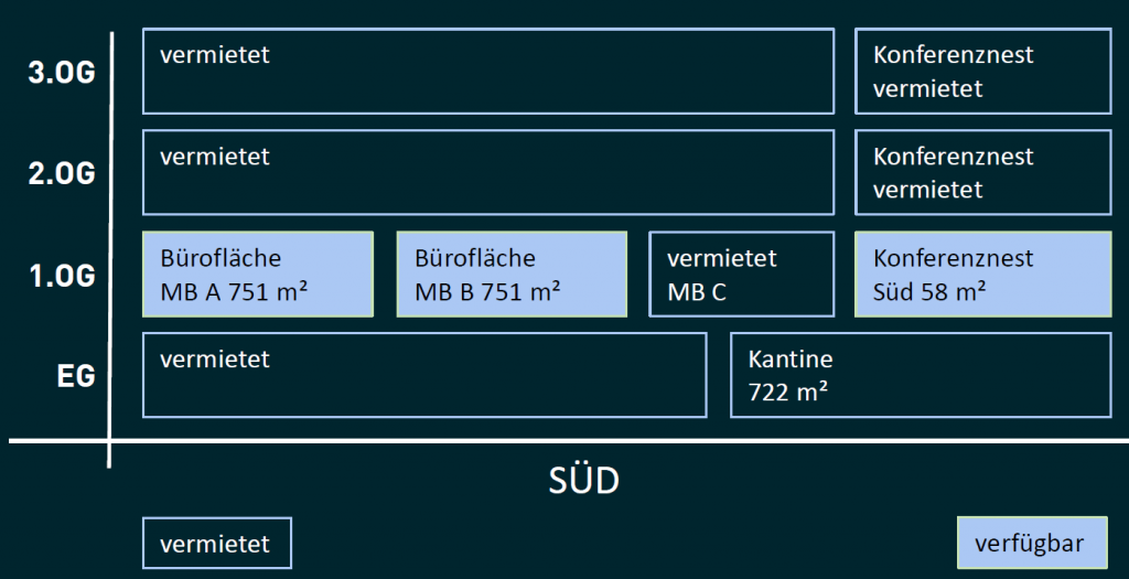 Insgesamt ca. 16.641 m², davon 7.827 m² kurzfristig verfügbar, teilbar ab 580 m²